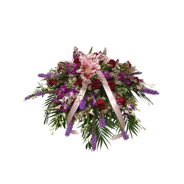 Cet assortiment de lys, dendrobium, rose, liatrice et wax marie à merveille le style exotique et champêtre. Pour l'être aimé qui appréciait mettre de petites touches d'extravagances à travers son quotidien paisible.