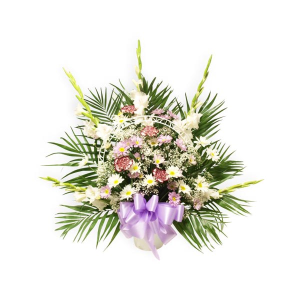 Vous désirez offrir vos condoléances de belle façon? Optez pour cette corbeille aux couleurs douces et calmes elle saura offrir du réconfort à la famille de l'être disparu.